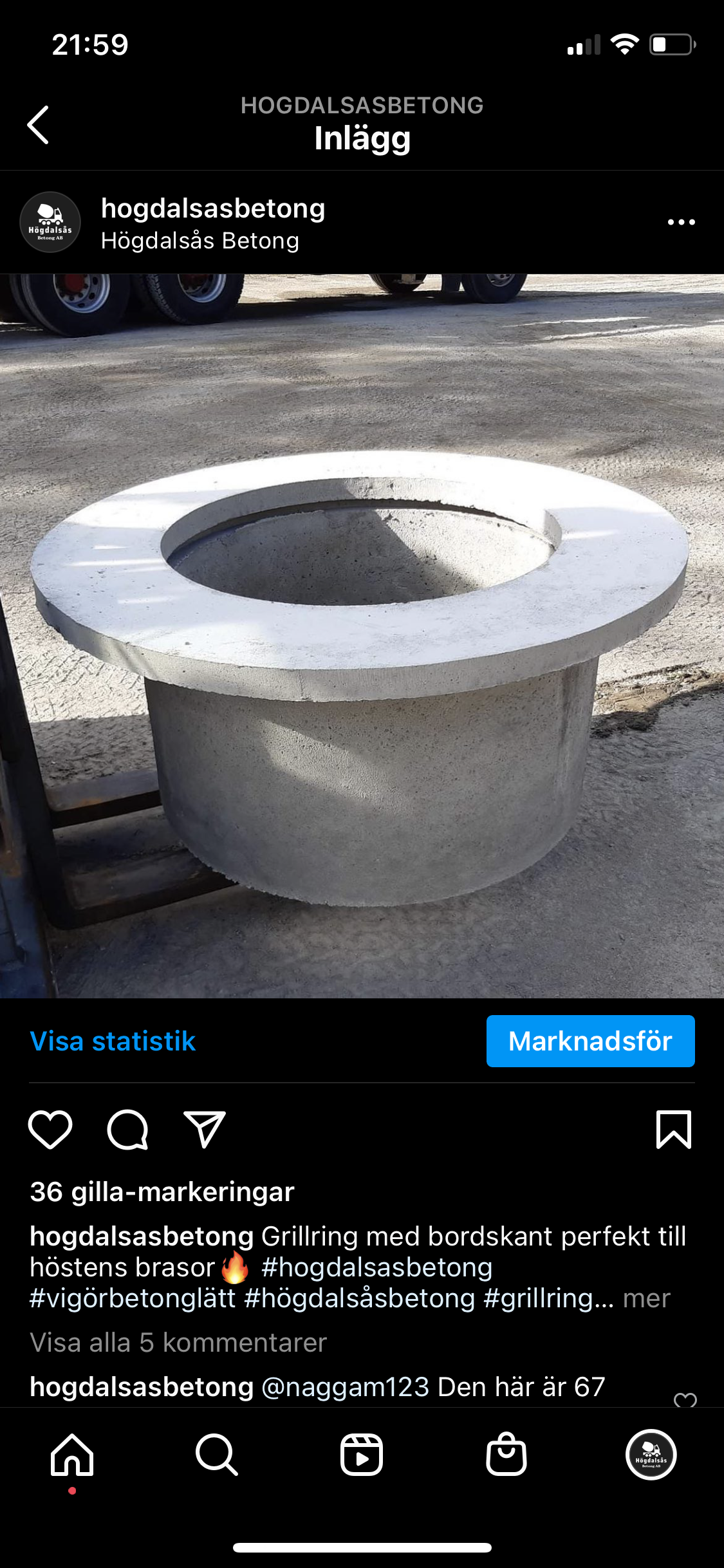 Plattor, kantsten, plintar, hålsten, brunnsringar, brunnslock, grillring med bordskant, sittbänk, marschallhållare.